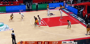 蓝球日报12月19日播报讯 CBA常规赛,江苏半场50-63落后上海。