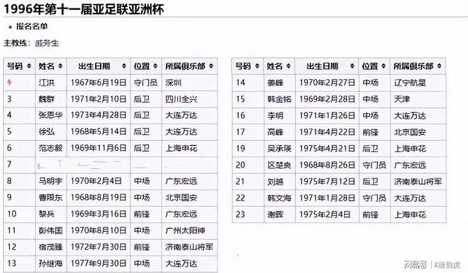 最后来看看当年度的亚洲杯预选赛名单,李红军、韩金铭等球员悉数在列。都说那时候的中国足球人才是最井喷的,如今看来还真的一语中的!